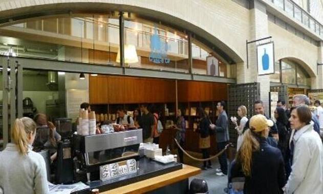 以包装袋上的蓝色瓶子为标志,是一家风靡全美的连锁咖啡馆