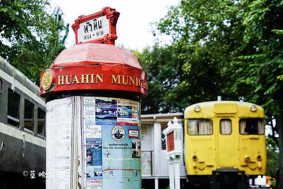 火车站里陈列着旧的火车和国王视察车站的照片,还有桂河大桥的旅游招贴画。站台上有一个金色的铃铛,曾经是火车离站的警铃。在火车站里,还有一个历史展示区,诉说着华欣的历史,有兴趣的可以参观一下。