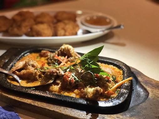 这里的菜品虽说是泰国菜,却用带着浓厚的潮州菜味道。除了咖喱蟹以外,还有黑胡椒蟹、炸白果值得一尝。