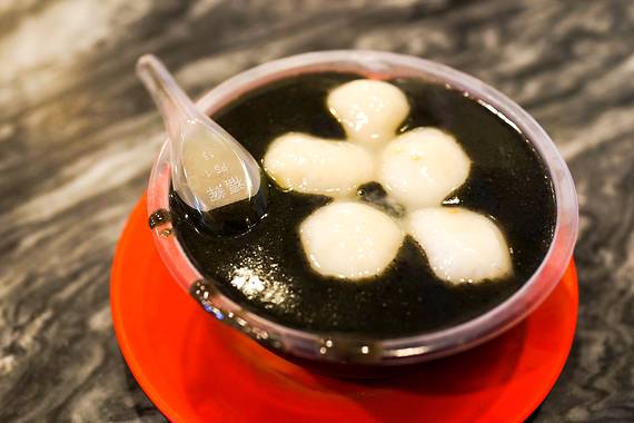 汤底可以任意选,推荐黑芝麻糊、花生糊,除了各种汤丸之外,他家还有煎香萝卜糕和家乡糖不甩等传统小吃可以品尝。
