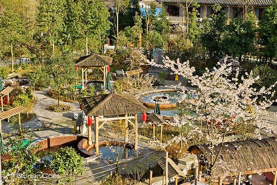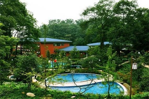 这个依托中国十大度假酒店之一的红珠山宾馆而开发的温泉环境优雅,富有诗意,郁郁葱葱的树林之中点缀着星星般的19个温泉池,依山势而建,错落中凸现欲说还休的神态,是名副其实的“森林温泉”。温泉水源于峨眉山山区两河口地下3000米处深处循环增温的承压氡温泉,距今已有二千年历史。