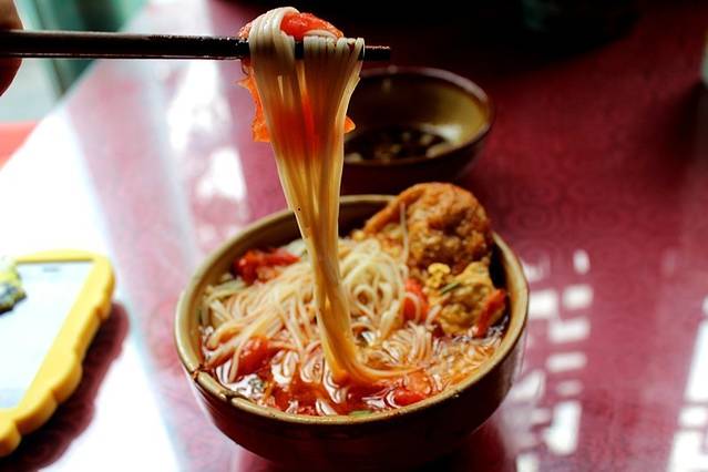 这里每碗煎蛋面都会有一个煎蛋,也可以加蛋面,泡在面汤里吃很入味。以番茄汤打底,再配上这里特制的油辣椒,口感超好!