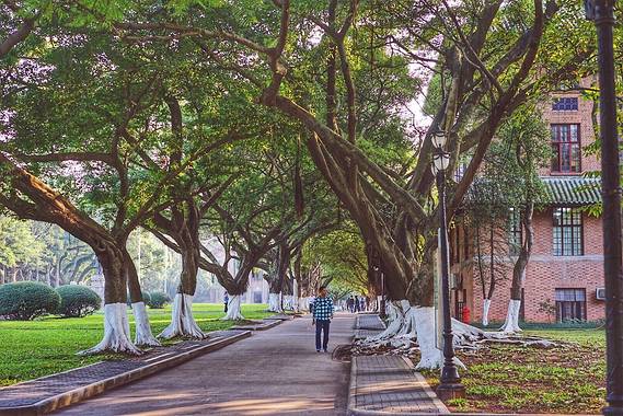 老校区老房子很多,有很多已经长满青苔,虽然有一些已经残壁败瓦,但它们共同见证了中大的成长及崛起。红色的老房子周围有郁郁葱葱的树木,大道完全被树荫覆盖,古朴与宁静结合得恰到好处。