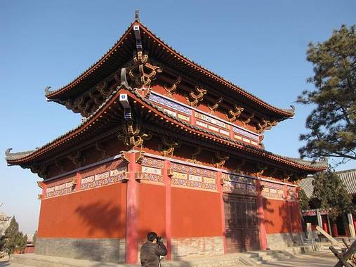 整个建筑,金碧辉煌,檐牙飞翘,工艺精美,朱门高柱,明丽豁敞,是研究古代建筑艺术的科学依据和模样。