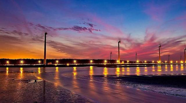 黄昏日落时分的高美湿地是一天中最美的时刻,血色残阳和发电厂的风车,长焦大光圈拍到了大光晕,一张都舍不得删!