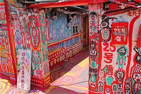 童话般梦幻美丽的彩虹眷村,每间房子的外墙甚至房子建的小路都被可爱的涂鸦所包围。