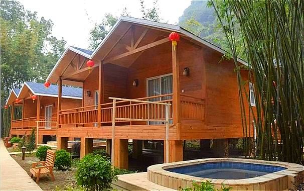 中式古典风格的独立木屋,迎合了都市人逃脱烦嚣、寻找静逸的度假需求。