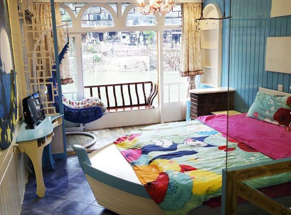 美丽的湖南人文风情住宿,花色的被子给人更加温暖的感觉,临江有阳台吊椅,掌柜是当地的乡民,非常的淳朴。
