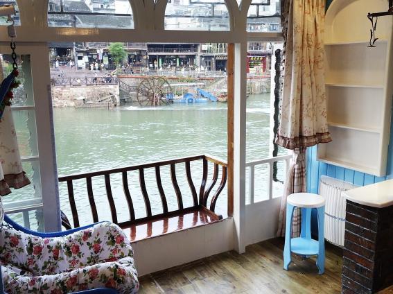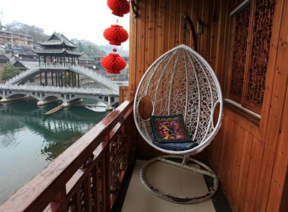 酒店的位置非常好,依江而建的吊脚楼,到了晚上能看到江边的各种美景,旅店的小姐姐非常热情。旅馆精巧雅致,阳台够大,有吊椅藤台水仙花。