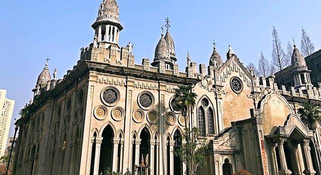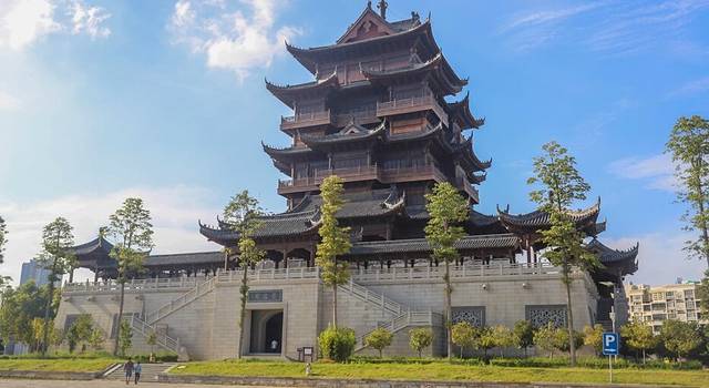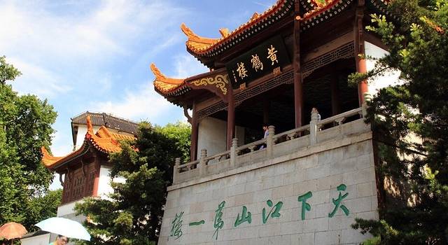 飞檐琉瓦,巍然壮美,近观沧桑建筑,远眺浩渺的长江