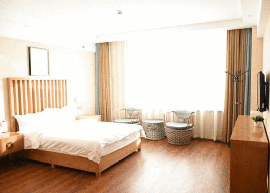 布置温馨,十分宽敞,清新典雅,能够欣赏休闲广场上的轻歌曼舞