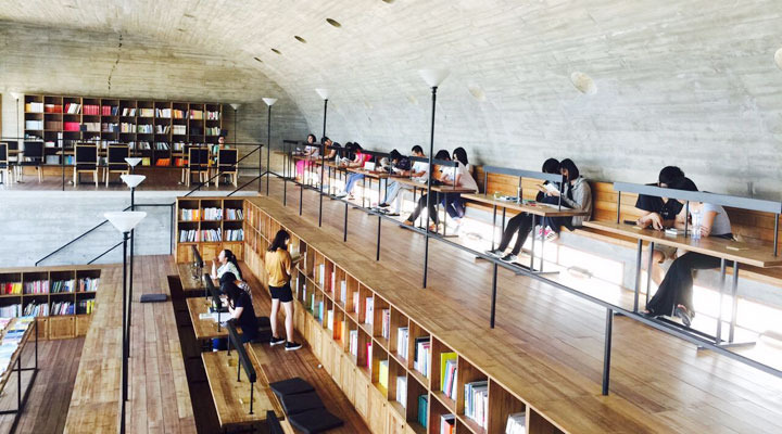 阅览室屋顶有阵列式的小光筒,无数圆形的光斑会在下午三四点钟穿透进来,似是时间的揭示。