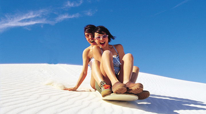 黄金海岸最吸引人的运动就是滑沙,坐在竹木制成的滑沙板上,从几十米高的沙山上呼啸而下,