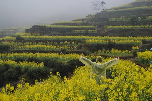 江岭十万亩油菜花。雨天效果不佳。
