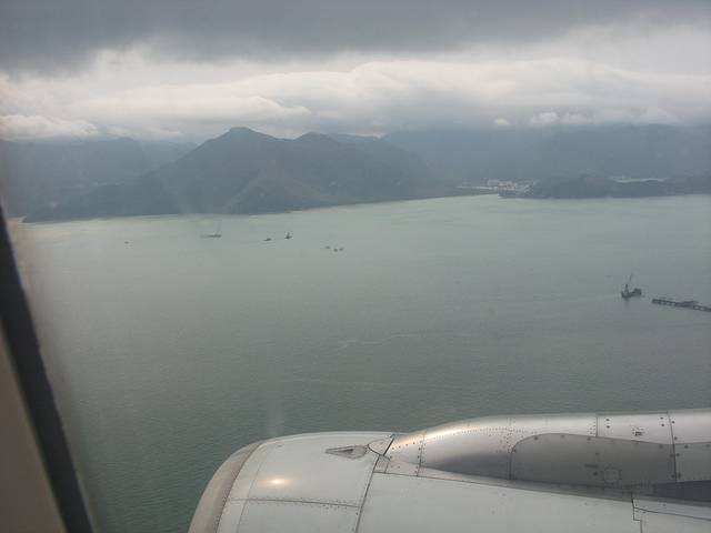 快到香港机场时,在海面滑行一小段时间,有海天一线的美景。