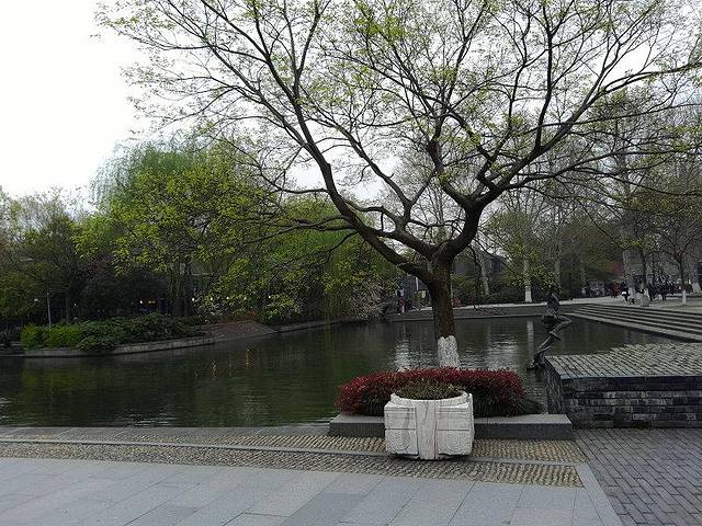 途径音乐喷泉广场,可惜阴天