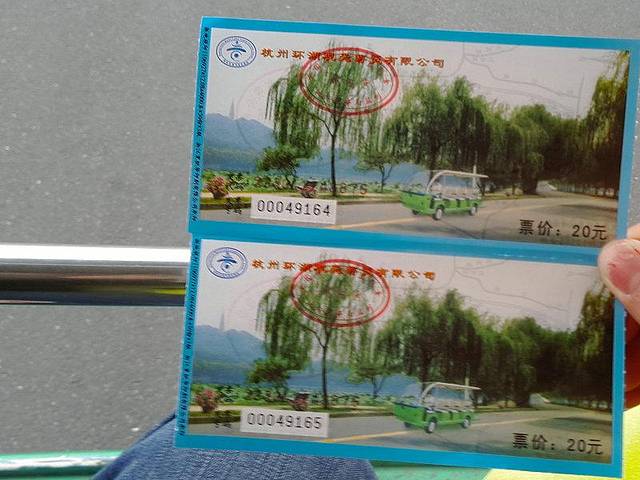 环绕西湖的电瓶车,全程40元/人,从断桥到雷峰塔20元/人