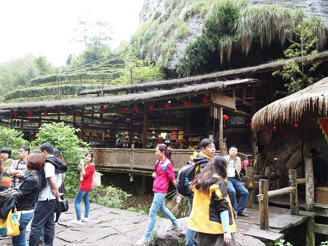 略失望,所谓的大红袍不过在山壁上刻上“大红袍”三个字,山壁对面有几个卖茶叶的地方罢了。达到大红袍之后很快就可以到站点。