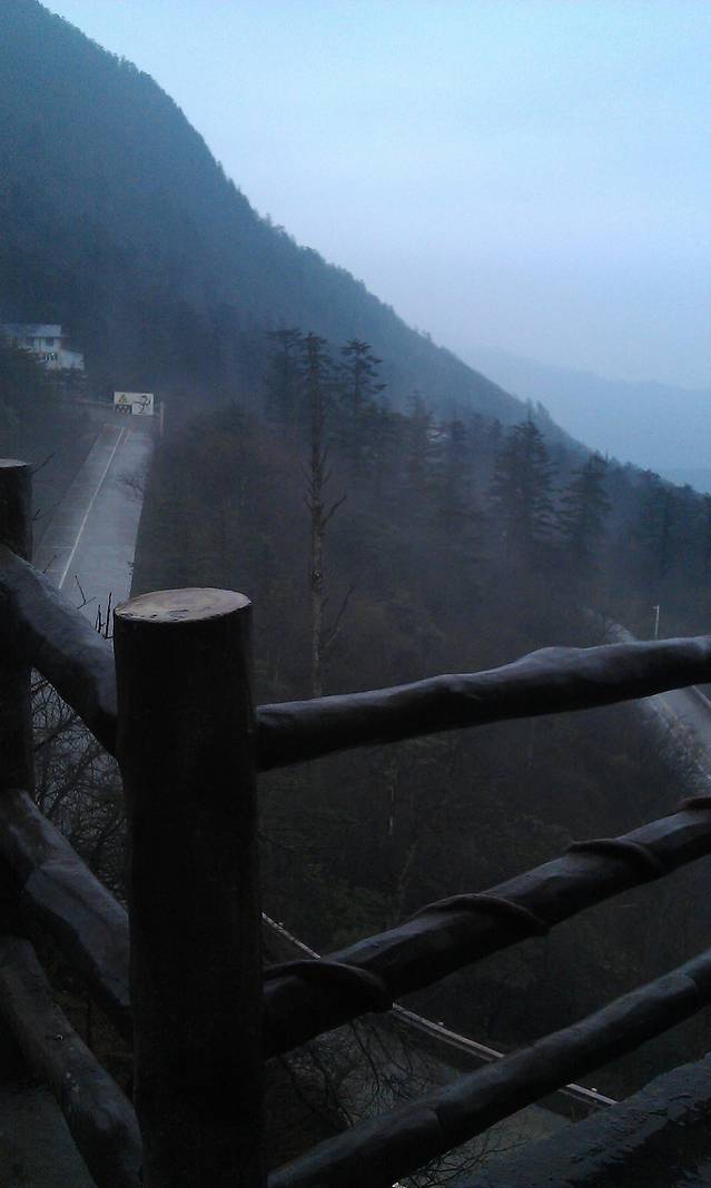 5点就出发想去看日出,结果出门发现在下雨又折回酒店内呆到了6点半,天蒙蒙亮,撑着雨伞上山顶,结果在山顶看到飘雪~好幸运呀~