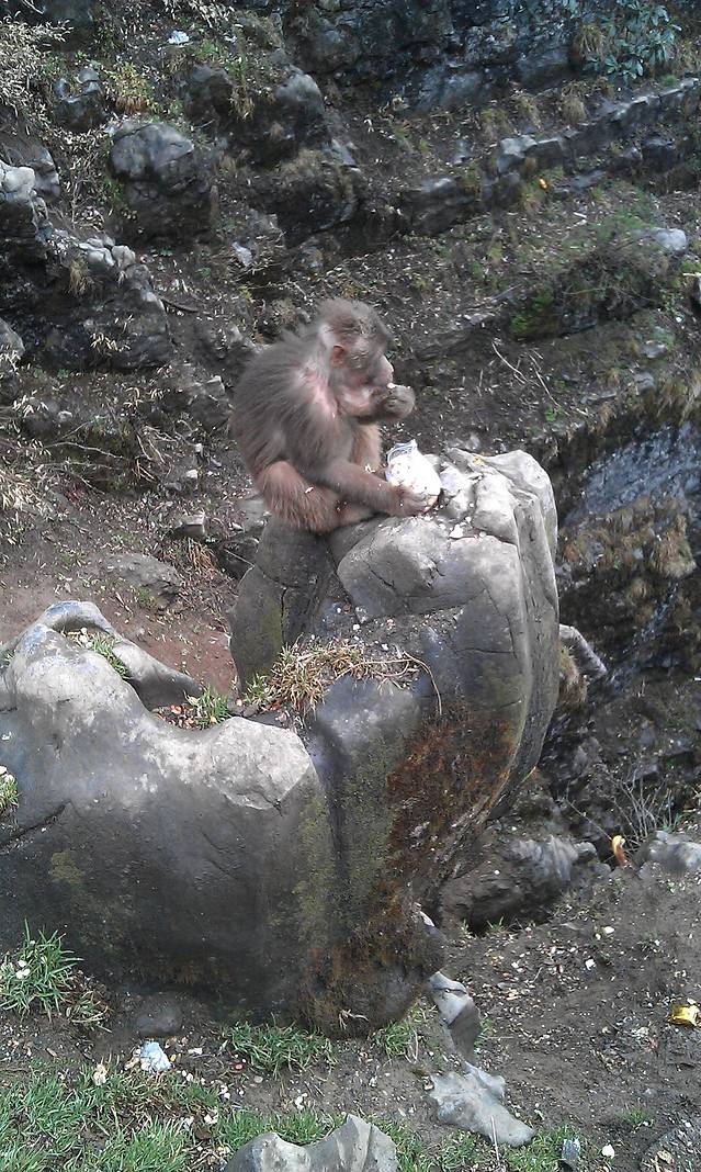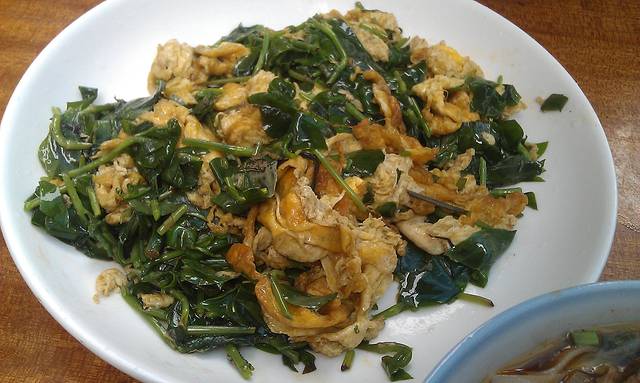 观光车下山速度很快,山路又绕,早上没吃下车都有些头晕,路边吃了绍子面和竹子叶炒蛋,店家还给了我们一壶峨眉绿茶,服务不错。