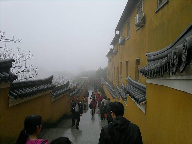 烟雨蒙蒙中,看什么都雾蒙蒙,南海观音院,那尊33米高的菩萨我也没有看到。我想说,对于寺庙佛文化没有感觉不知道的亲,去寺庙游玩真不是个好想法。我眼里每个寺庙都那样,很多虔诚的信徒远远的在下面跪拜磕头,我小心翼翼的,偷偷摸摸的,在殿门口伸脑袋看一下就走,生怕看多了没有估计到礼数得罪了菩萨。也觉得,我站门口看好像下面人都对着我磕头一样很有压力。这也让我觉得没有什么好看的。亲们,去普陀山一定要选择天气很晴朗而且没风的日子