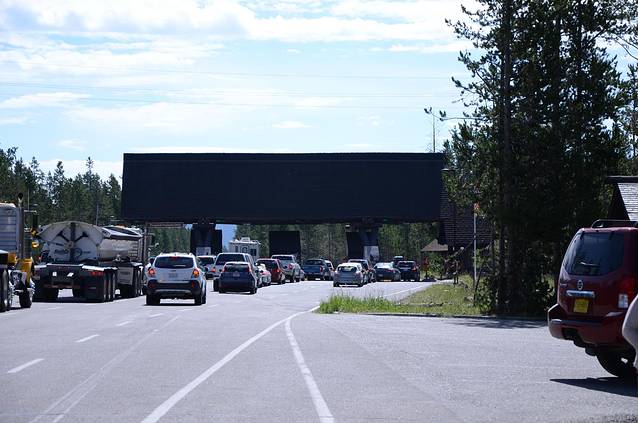 从Tower Fall到Gardiner, MT的路上很幸运,遇到了一群鹿。去Gardiner, MT需要出黄石的北门,这个门是黄石公园最早的大门,午饭就在Gardiner解决了。