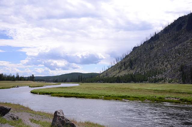 从Gardiner, MT再次进入黄石公园后,我们先去了Mammoth hot spring,然后是Norris Geyser Basin,Lower Geyser Basin,Old Faithful Geyser,因为时间的关系,没有去West Thumb Geyser Basin而是直接到了Yellowstone Lake的Lake Hotel.