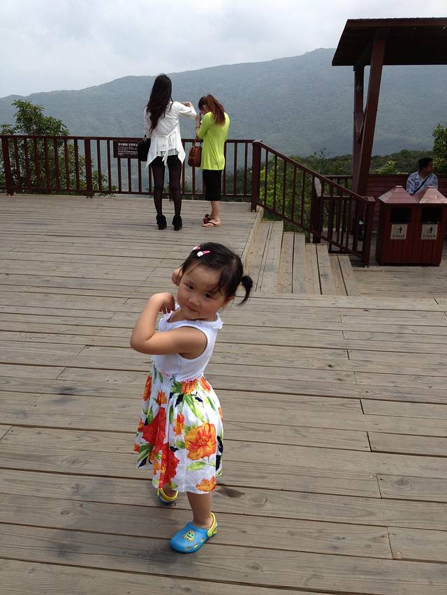 早上起来吃好早饭,不慌不忙的坐着公交去的。如果确定去的话,其实可以先在网上定好打折票,便宜不少呢。我和我妈妈还有果果去这个地方有点不划算,因为有几个地方有限制不让小孩和老人去的,因为不安全。非诚勿扰2的拍摄地--吊桥,说是有高血压的不让上。还有缆车也不行。所以有点不值。个人感觉有点意思的就是里面的区间电瓶车了,那么险的山路,司机还开的特别快,老刺激了,但真的也很危险,因为那车除了有个车顶,其他都是拉风的。上山和下山的两车相遇的时候会很有意思,我家果果也学会了,哈哈,去了你就知道了。