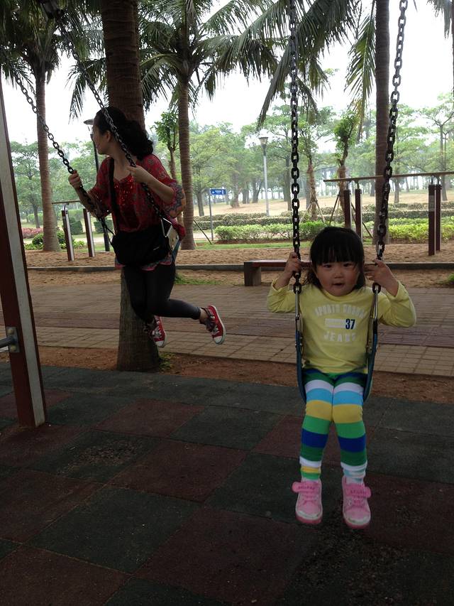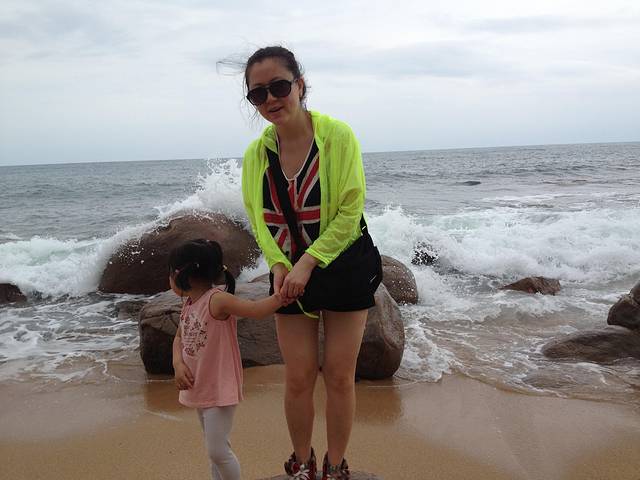 晚饭我们自己做的,吃好后迫不及待的去了海边,果果老开心了。