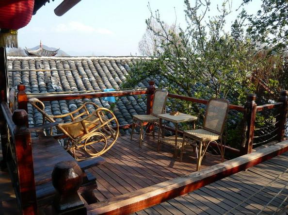 其实,古镇所有客栈都是相似的,阳光,庭院,吊椅,狗狗。