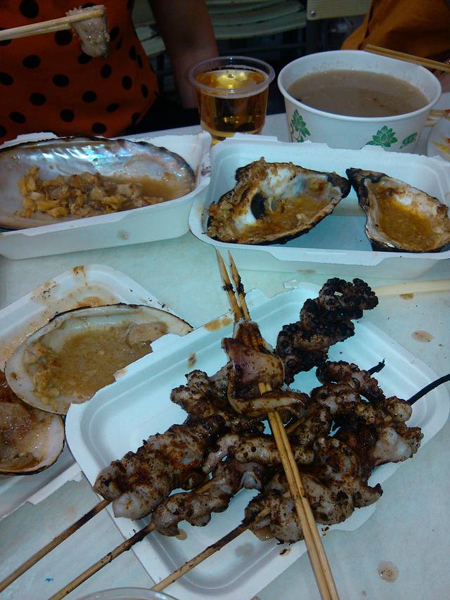 终于走出了迷宫,大家饿得前胸贴后背了,想着怎么也得好好犒劳一下自己,点了大堆的海鲜烧烤,结果,难吃到无法形容,更恐怖的是,章鱼被他们烤得面目全非,你们还认得出这是章鱼吗?穿着它的木棍已经可以当炭用了