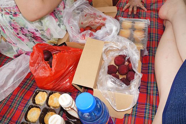 我多少还吃了点,朋友几乎都没吃,商量着总不能亏待自己,幸好出门时还带了些豆腐干,就跑到超市买了几瓶酒和水果,准备回公寓接着吃,是不是有点女汉子的感觉······