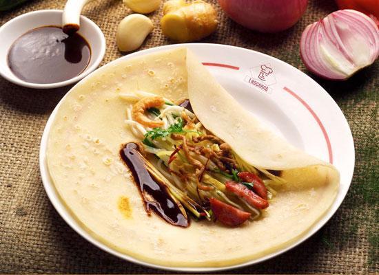 离住处很近步行就到。春饼的味道很好,卷着土豆丝、豆芽菜再加点菜,配菜量很足,还有免费赠送的小米粥。吃的爽极了