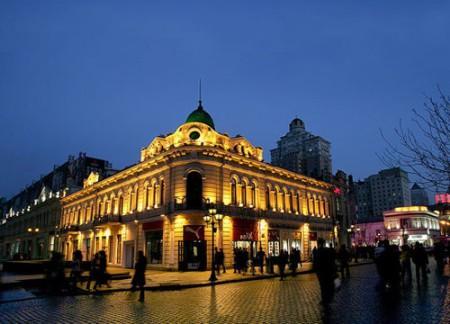 在酒店入住好后,稍微休息了一会,我们就散布于中央大街之上了。两边的建筑真的是很有特色,但是由于天有点晚了,而且哈尔滨零下快二十度的气温真的不是盖的,我们的鼻涕泡都快冻出来了,所以就赶紧找地儿吃饭,详细搜刮中央大街还有时间,肚子要紧~