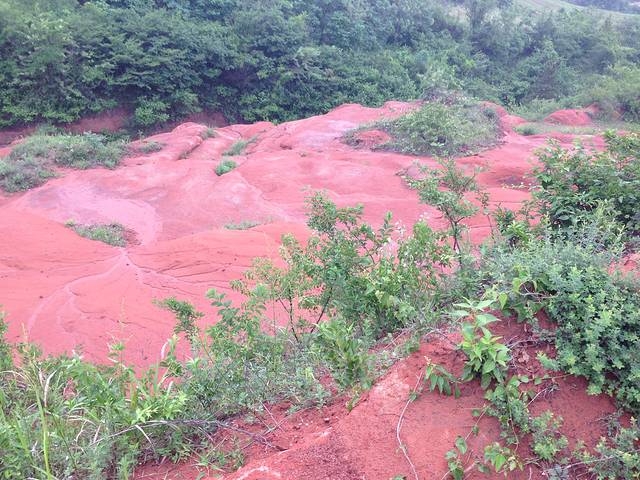 红泥地质,入目皆红,景色壮观。由于下过雨,去的路泥泞,车很难开,轿车底盘被扛,所以最好是SUV,地点没有当地向导,很难找到,GPS也搜不到的好境地。
