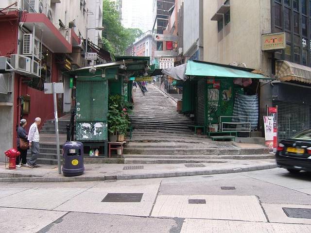 出了地铁站,就看到了清晰的指路牌,不过时间还早,山顶是晚上要去的项目啦。所以我们右转去了砵甸乍街,觉得名字比较有趣。: )