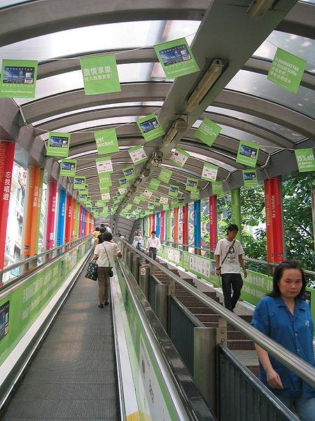 《重庆森林》里王菲饰演的摊档小妹阿菲每次去梁朝伟饰演的经常633家作怪,都要坐这个中环至半山自动扶梯。据说坐完全程要20分钟,也是香港的一个特色景点啦!我们是皇后大道中的入口进来的。