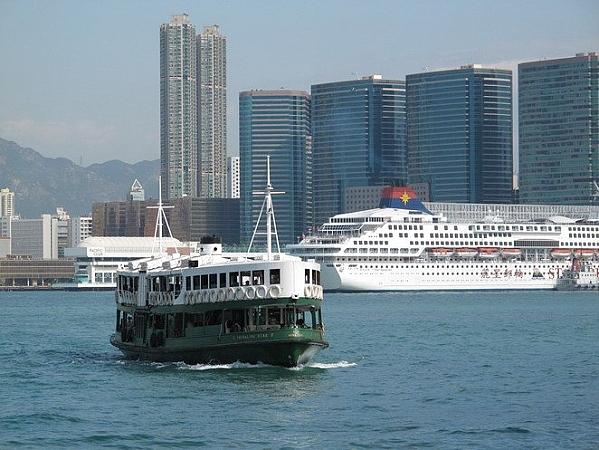 远处星星点点,灯光璀璨的港岛。晚上8点准时有“幻彩咏香江”灯光表演,我们站在码头,还一群鬼佬朋友们,看了一会儿。灯光和音乐配合的很默契,可惜夜晚雾大,没能好好欣赏。就坐上了返回中环的天星小轮。