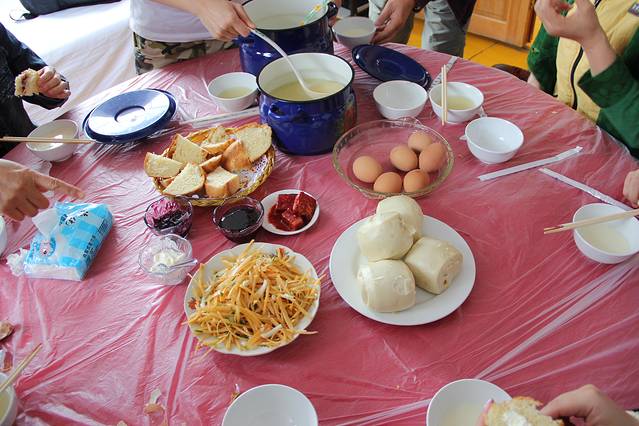 吃完早饭就一同骑马,我们是初学者建议就两人一匹!