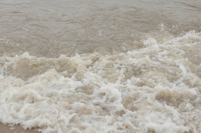 我们一家三口包了一辆出租车。今天下着毛毛雨,湖边风特别大,浪也就特别大。慢慢细雨中,心情很好。