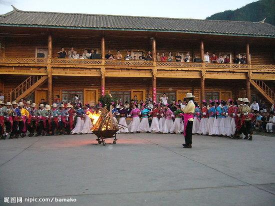 在藏民家一边看表演,一边吃东西。有青稞酒,酥油茶,牦牛肉,松茸鸡汤,青稞面。藏民很热情,个个能个善舞,人也很大方。大家还自己制作青稞粑粑,大部分人都弄得一手是青稞面糊。烤牦牛肉随便吃,可惜不能打包。