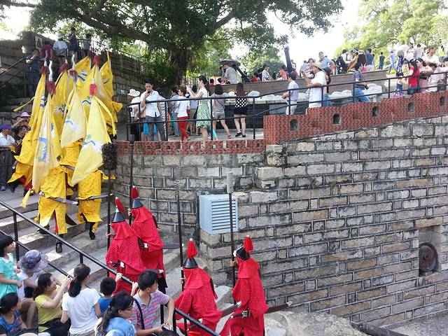 里面都是大大小小的各种炮,其实我不太感兴趣,唯一有趣的我觉得就是这场表演了,只是觉得那些演员们好辛苦,大夏天的都还要如此穿戴。胡里山炮台出来就是海边,这是我没有想到的。我喜欢这样的设计。