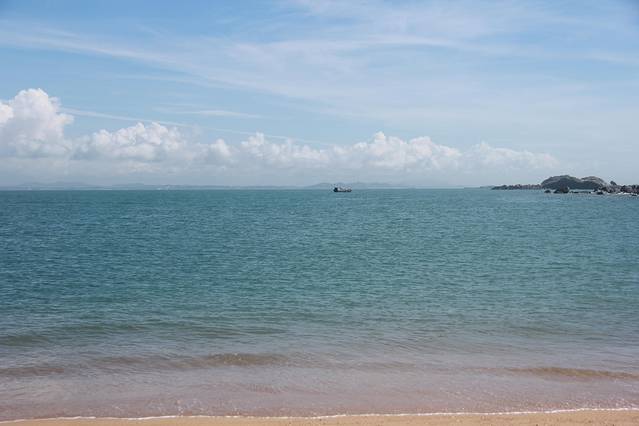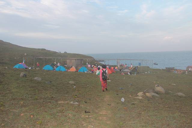 到了岛上发现不少营地了。急匆匆找地露营,(第一次难免有点紧张)。印象最深得是,渔船停靠码头,离营地太远还要翻小山坡,扛一桶50來斤水,在沙滩上一脚深一脚浅很不好走,水到营地累的够呛。下午五点半换好泳衣去游泳,水质不错,比宁波一带好多了,比起蜈支洲也就差一点点了,砂质细腻,沙滩平阔,还有是这种摆渡方式有些像马尔代夫,挺小资,挺浪漫。(小情侣过来绝对好)