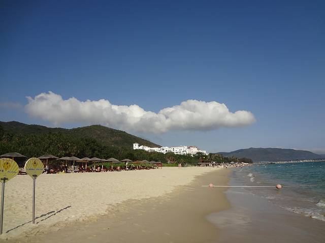 浅滩捉螃蟹,海滩冲浪,烧烤,潜水(这个另外多加150元),快艇项目是很多的,有些会因为天气原因变动的 ,后海湾一日游是我们觉得最值得一去的,风景好玩的好吃的也很有特色,这种私人组织的一日游有时也要看运气的,有的只是在船上钓钓鱼吃吃烧烤的,我们去的项目会多些收费也很合理,工作人员说每天的项目安排其实都不一样的,有时看参团的人数有时是天气等因素有不同的安排,幸好我们去的哪天人不多就可以多玩会只是到下午没太阳了,大海看上去就没有哪么美了。这也是最累的一天6点多起来到晚上6点多才回酒店,一天都在玩也很累的,呵呵。。。。。。