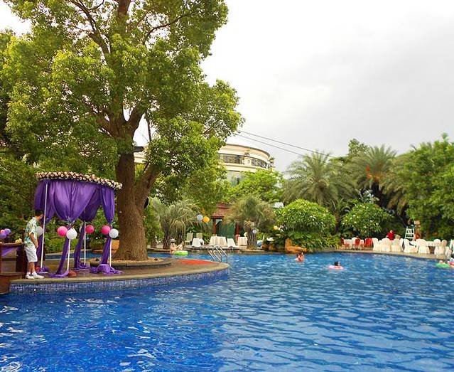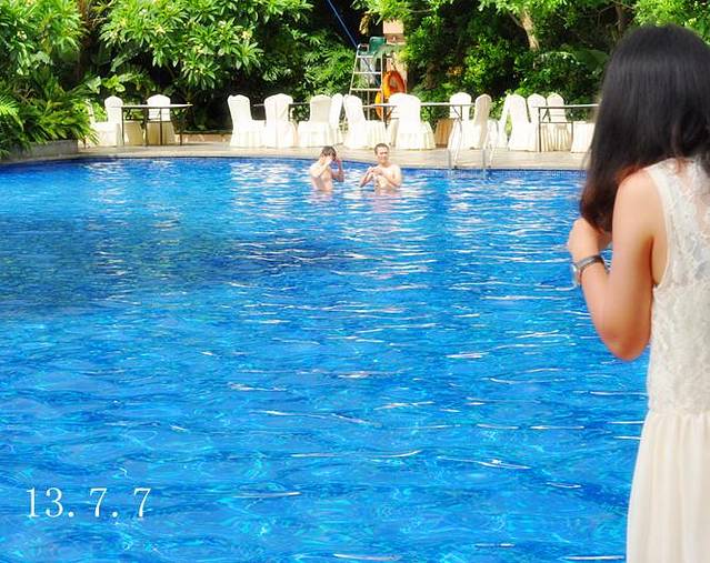 蓝色的泳池,戏水的群民,悠闲的周末,是否该放松下!当天刚好有一对新人举行婚礼,把室外游泳池全包了,准备举行一个甜蜜温馨夏日的户外party!Congratulations!!酒店工作人员都在络绎不绝的筹备着,花球、餐桌、灯笼、气球、烧烤 。。。