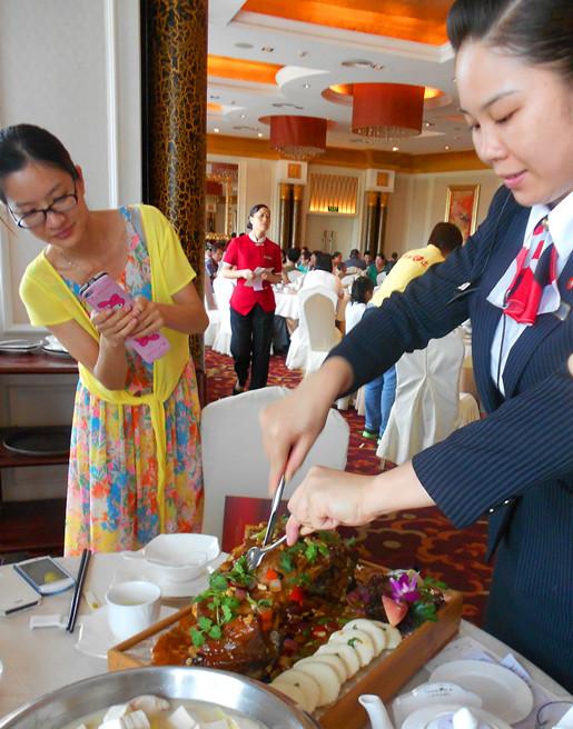 午餐(位于酒店三楼),张小姐带我们体验了“汉宫”(中式饮食),一道道叫不出名字的奇珍美味,还有家常小点心,特别的亲切,精工,旁边用餐的旅客都吸引过来了,个个拿着手机在拍照,现场尤其的热闹,搞笑!