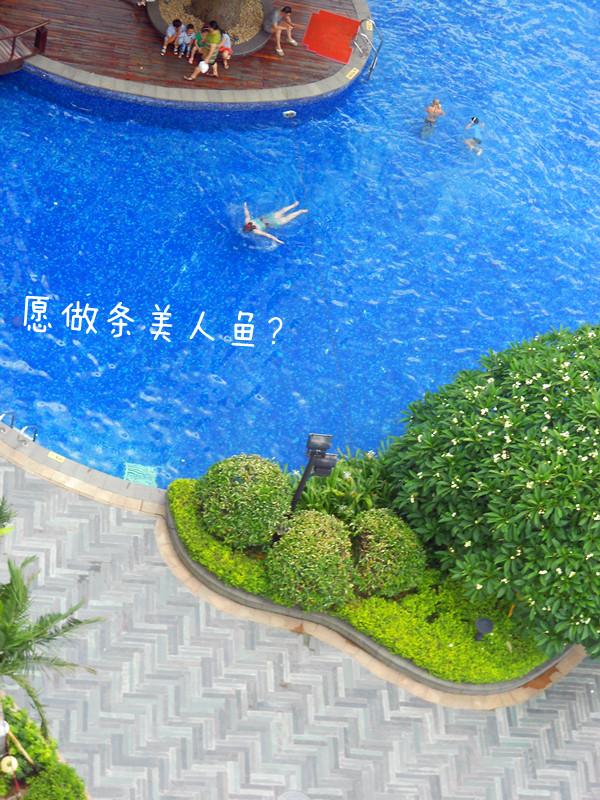 看着蓝色的泳池,却没那下水的勇气