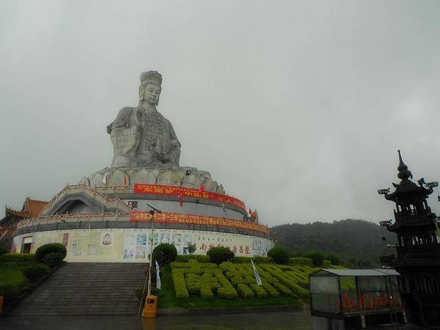 观音,在我国人的心目中有着崇高的地位和象征,位于山顶最高处,世界最大的花岗岩石雕观音圣象,深深的吸引着我,特别是被雨水冲洗过后,似乎在那远远的祈祷着我们每一个人。另外,一路上,都有很多水彩画的观音,深藏在山中、岩壁上、路途旁,颜色鲜艳、多彩,还有那荷花,朵朵画的与真的一样!! 现请允许我向您许个愿:世界和平!!
