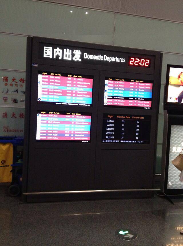 登机时间22:02,已晚点近一个半小时