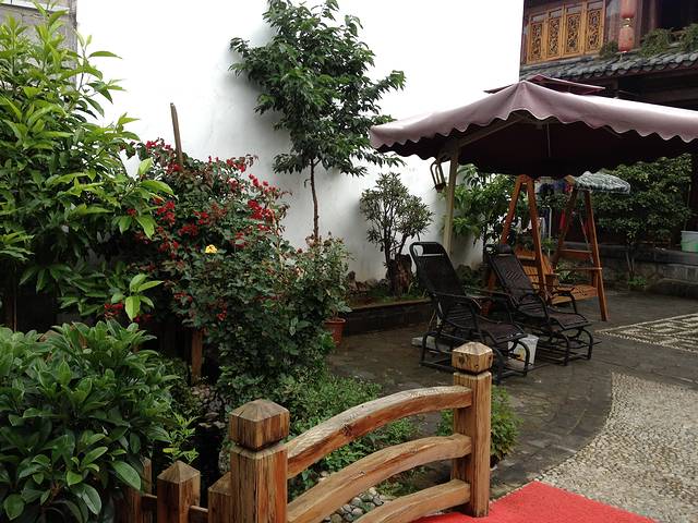 一下飞机,就迎来一阵凉风,使得被高温烘烤了几个月的我们立刻神清气爽,飞机晚点带来的怨气也随之消散,咱这是避暑来了!客栈位于七一街八一下段,我们在七一街口下了车,拖着行李进了古城。艰难地托着行李到了客栈,老公在埋怨没有行李道,从七一街口到客栈的路不远,却把我们累得够呛,这古城的石头路对于托箱客来说,可真是一种酷刑啊!心里暗自在庆幸没有订在古城中心的客栈,不然还不知道这段路该怎么走......